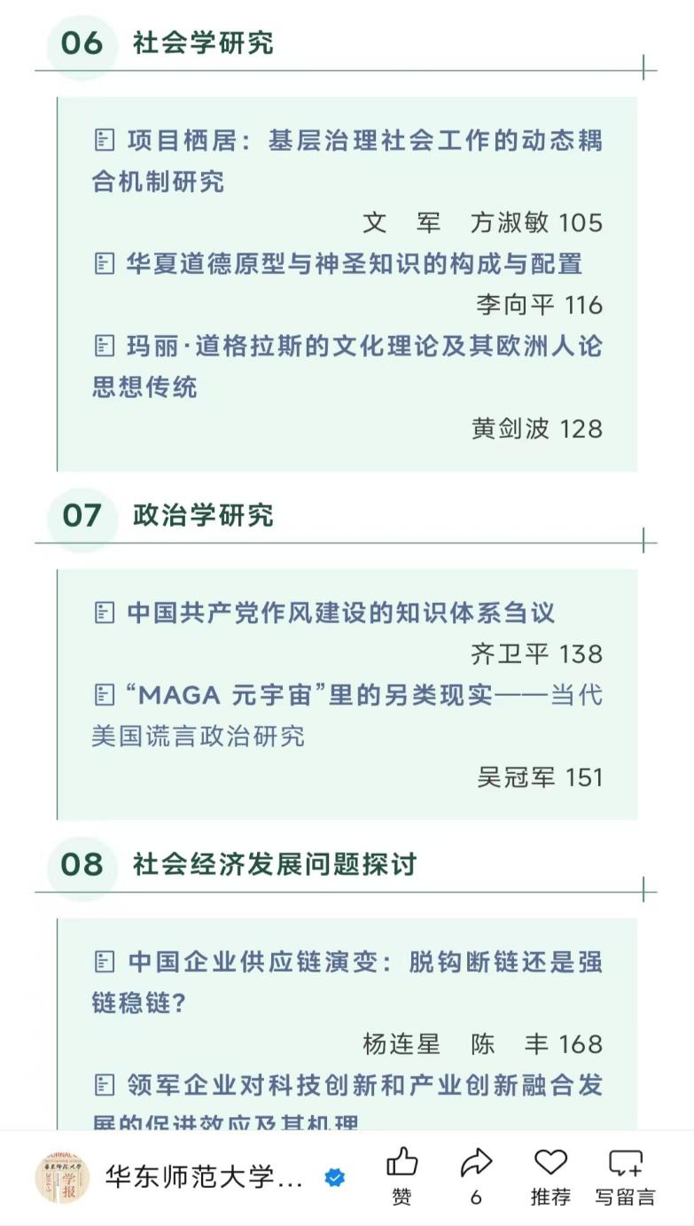 近日,哲学与社会发展学院李向平教授在《华东师范大学学报》(哲学社会科学版)2025年第5期上发表了题为《华夏道德原型与神圣知识的构成与配置》的高质量论文。