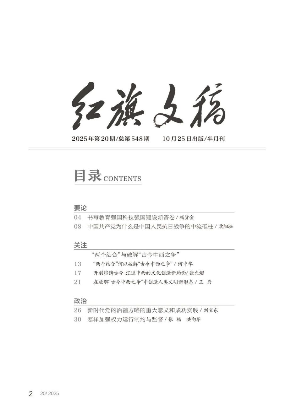 近日,哲学与社会发展学院哲学系何中华教授在《红旗文稿》2025年第20期上发表了题为《“两个结合”何以破解“古今中西之争”》的高质量论文。