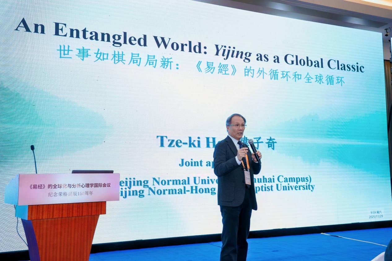 会议设置了主题发言与多场小组讨论。首场主题发言中,北师香港浸会大学韩子奇教授系统梳理了《易经》的国际传播历程,强调“天人合一”思想对纾解当代心理问题的价值。澳门城市大学申荷永教授生动追溯了荣格与卫礼贤的学术交往,阐释了《易经》卦象如何揭示人生旅程即心灵旅程的本质。山东大学张文智教授则分析了易学哲学“体用贯通”的特质及其螺旋式宇宙观对解决复杂现实问题的指导意义。其后的十九场小组发言,议题涉及“分析心理学与易学关系”“海外易学传播”“共时性与《周易》哲学”及“心理学视域中的音乐”等,现场学术交流气氛热烈。