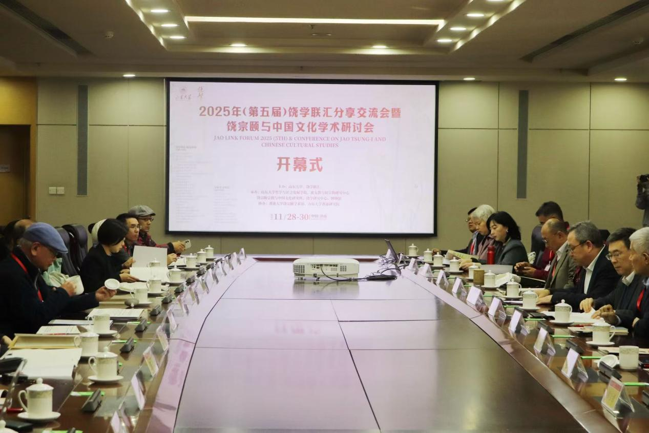 2025年11月28-30日,第五届饶学联汇分享交流会暨饶宗颐与中国文化学术研讨会在山东大学举行。山东大学常务副校长吴臻,饶学联汇召集人、香港大紫荆勋贤、香港大学饶宗颐学术馆馆长、中国工程院院士李焯芬出席开幕式并致辞,香港大学饶宗颐学术馆副馆长姚锡安代为宣读饶宗颐先生亲属、饶学联汇创会会长、饶学研究基金永远会长饶清芬致辞。山东大学港澳台事务办公室主任徐希锋主持开幕式。