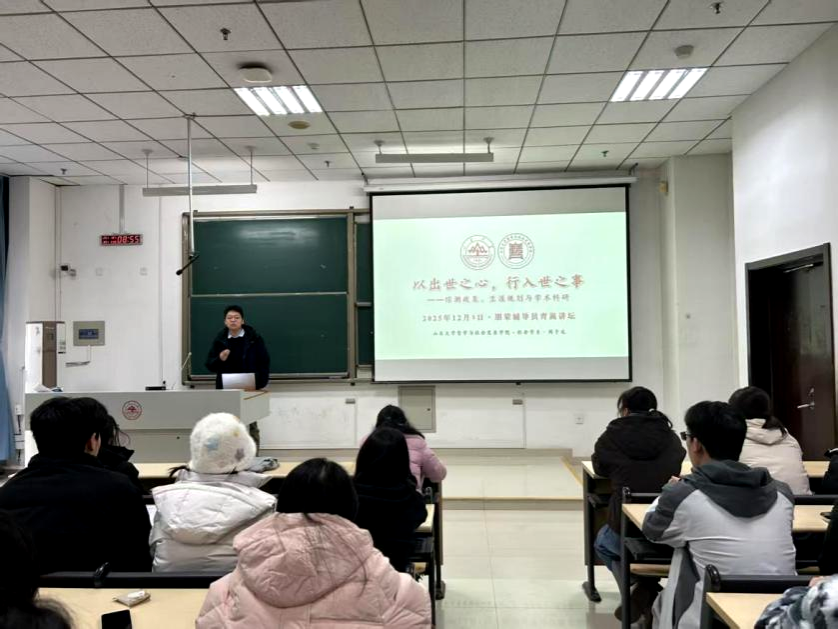 为帮助2025级新生明晰综测政策,科学规划大学生涯,12月5日,山东大学哲学与社会发展学院在知新楼B座112教室成功举办综测解读与成长规划分享会。学院党委副书记翁祥栋出席会议,学院团委书记、2025级本科生辅导员班梦姣主持会议,特邀 2022 级社会学二班班长、校长奖学金获得者周子龙担任主讲嘉宾,以朋辈辅导员身份作青嵩讲坛,切实发挥“传帮带”作用,助力新生走好大学第一步。