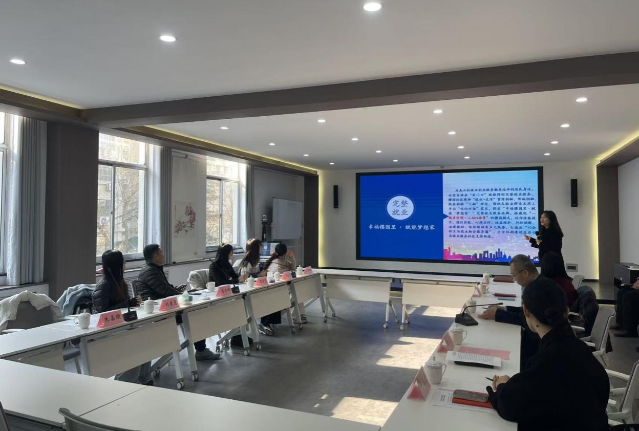 随后,团队赴奎文区樱园社区开展座谈,围绕“幸福樱园里·赋能梦想家——社区微业完整就业服务项目”展开深度研讨。座谈会上,樱园社区相关负责人详细介绍了项目背景、实施流程及实践成效。该项目由社区党委牵头,依托“五社联动”机制,通过“樱小暖”微业铺子、“微小和”调解等多元服务场景和多样化的就业培训等方式搭建完整就业“四有体系”。葛忠明教授结合社会工作专业理论与实务经验,从服务优化、可持续发展等方面提出专业指导建议,为项目提质增效提供了新思路、新方法。