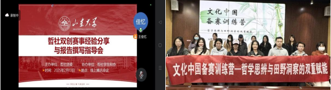 聚焦文化浸润与调研实践,创新专业思政,引领德育哲思。党团支部多样化开展“学思践悟强根基・红色传承育新人”等联学共建活动,深入推动习近平文化思想学习入脑入心;推出“青衿同心・青春向党”领航读书会、“SDUTALK”学生创新大讲堂等活动,引导学生从哲学社会科学专业视角深化对“两个结合”的理解。组建15支实践调研团,覆盖理论宣讲、文化传承、社会治理、乡村振兴等多个领域,引导广大学子将论文报告写在祖国大地上。