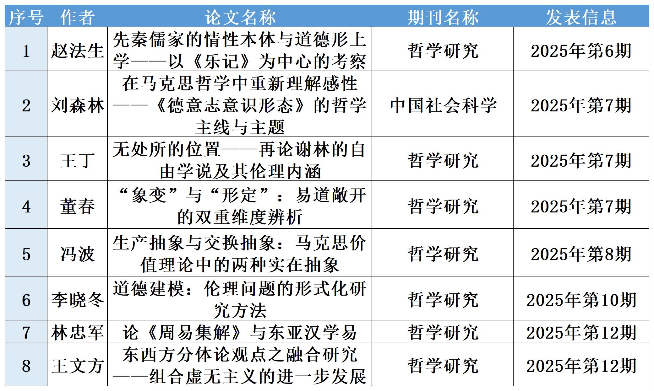 2025年度哲社学院在中文顶级学术期刊发表论文一览表