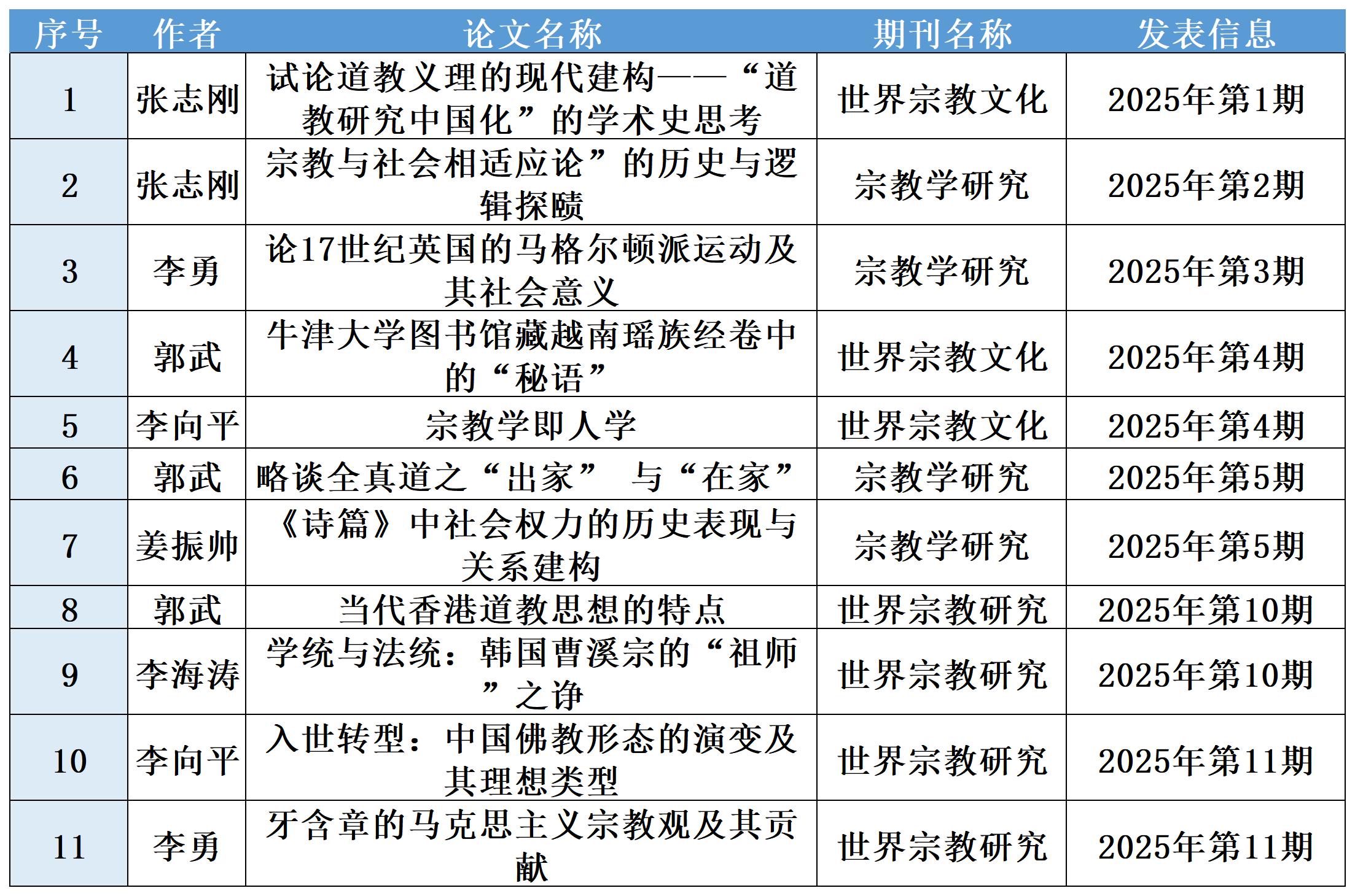 2025年宗教学三大刊物发表论文