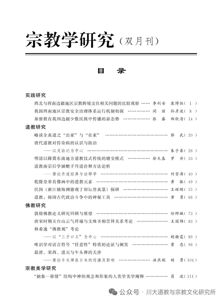 近日,山东大学犹太教与跨宗教研究中心郭武教授在《宗教学研究》2025年第5期上发表了题为《略谈全真道之“出家”与“在家”》的高质量论文。