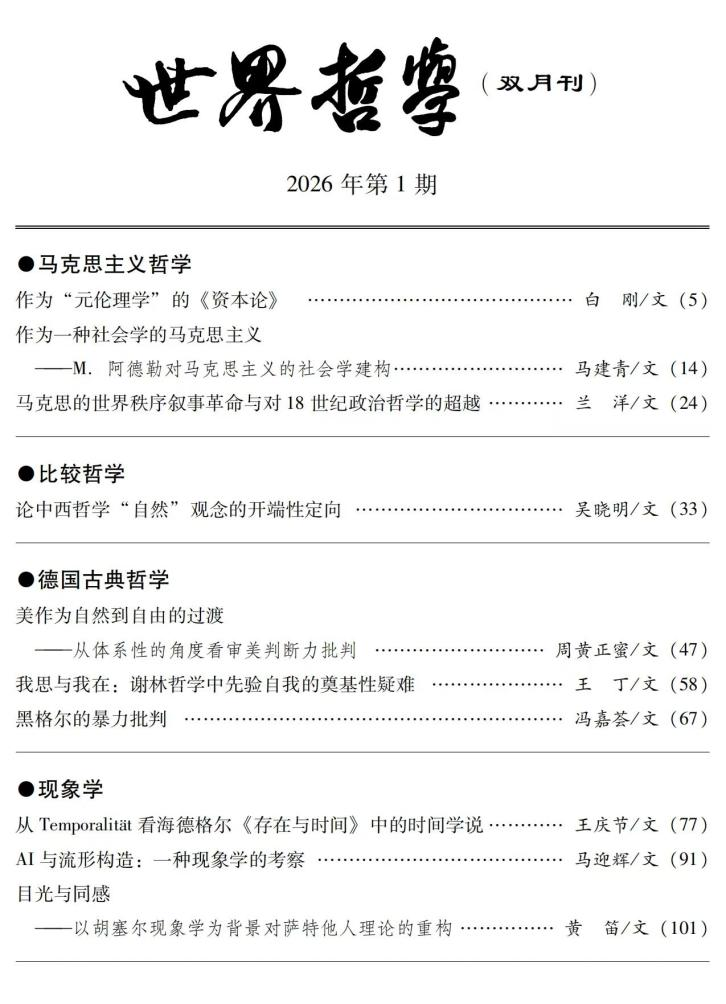 近日,山东大学哲学与社会发展学院王丁教授在《世界哲学》2026年第1期上发表了题为《我思与我在:谢林哲学中先验自我的奠基性疑难》的高质量论文。