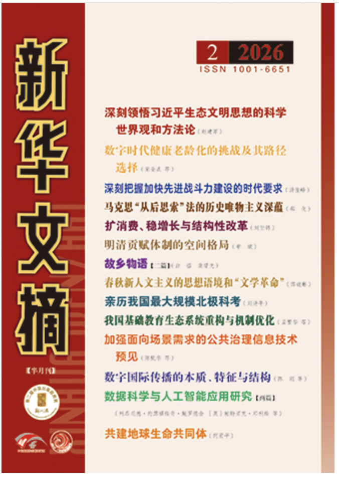 近日,《新华文摘》2026年第2期封面重点推荐并全文转载了哲学与社会发展学院宋全成教授与2022级社会学专业博士研究生张倩的题为《数字时代健康老龄化的挑战及其路径选择》的高质量论文,原文发表于《济南大学学报》(社会科学版)2025年第4期。
