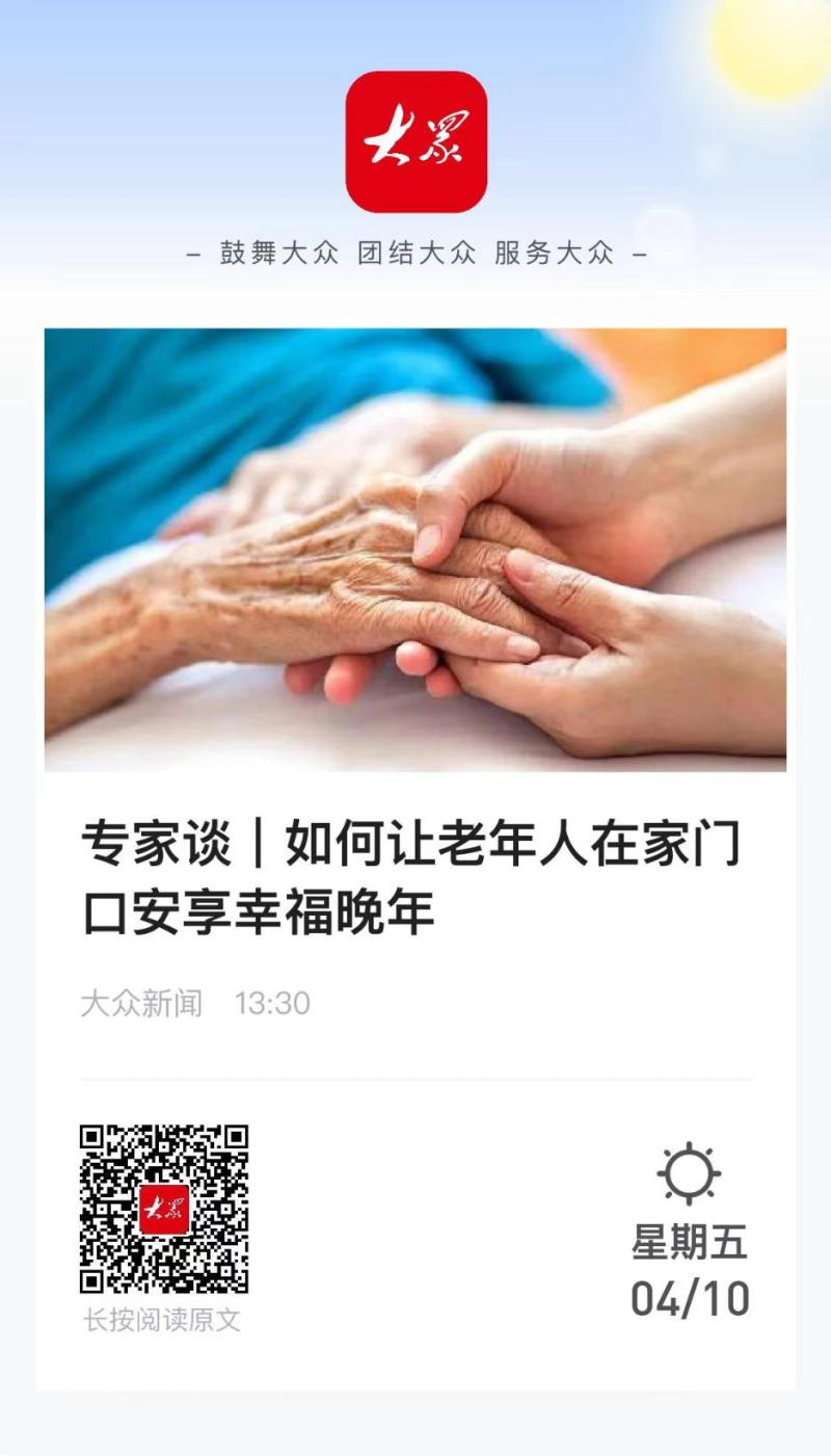 哲学与社会发展学院黄春蕾教授在大众日报发表时论文章《如何让老年人在家门口安享幸福晚年》