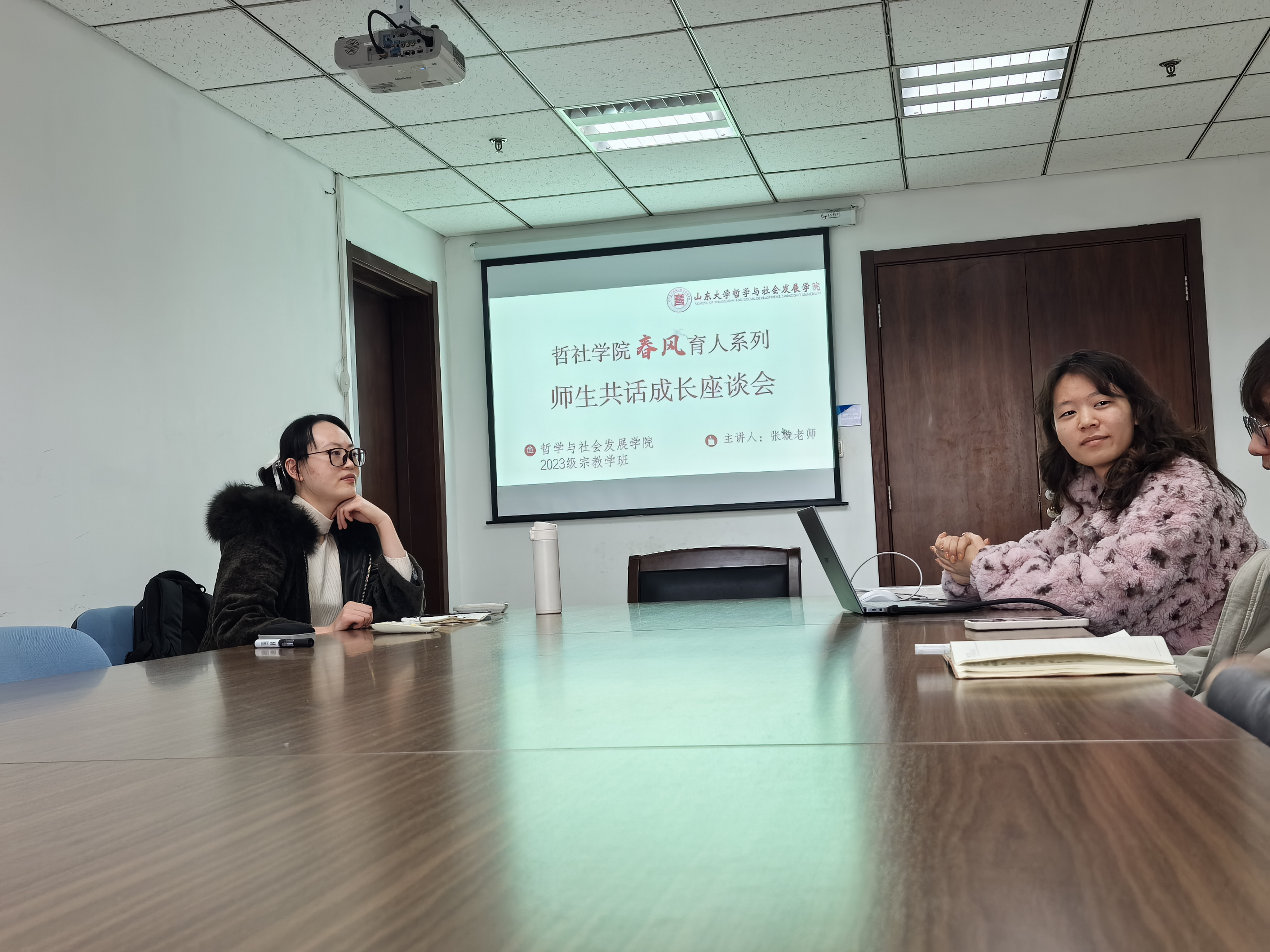 2025年11月19日,山东大学哲学与社会发展学院23级宗教学班举行了“春风”系列师生共话成长座谈会。本次活动由班主任张璇老师主持,全班同学悉数到场,积极参与。