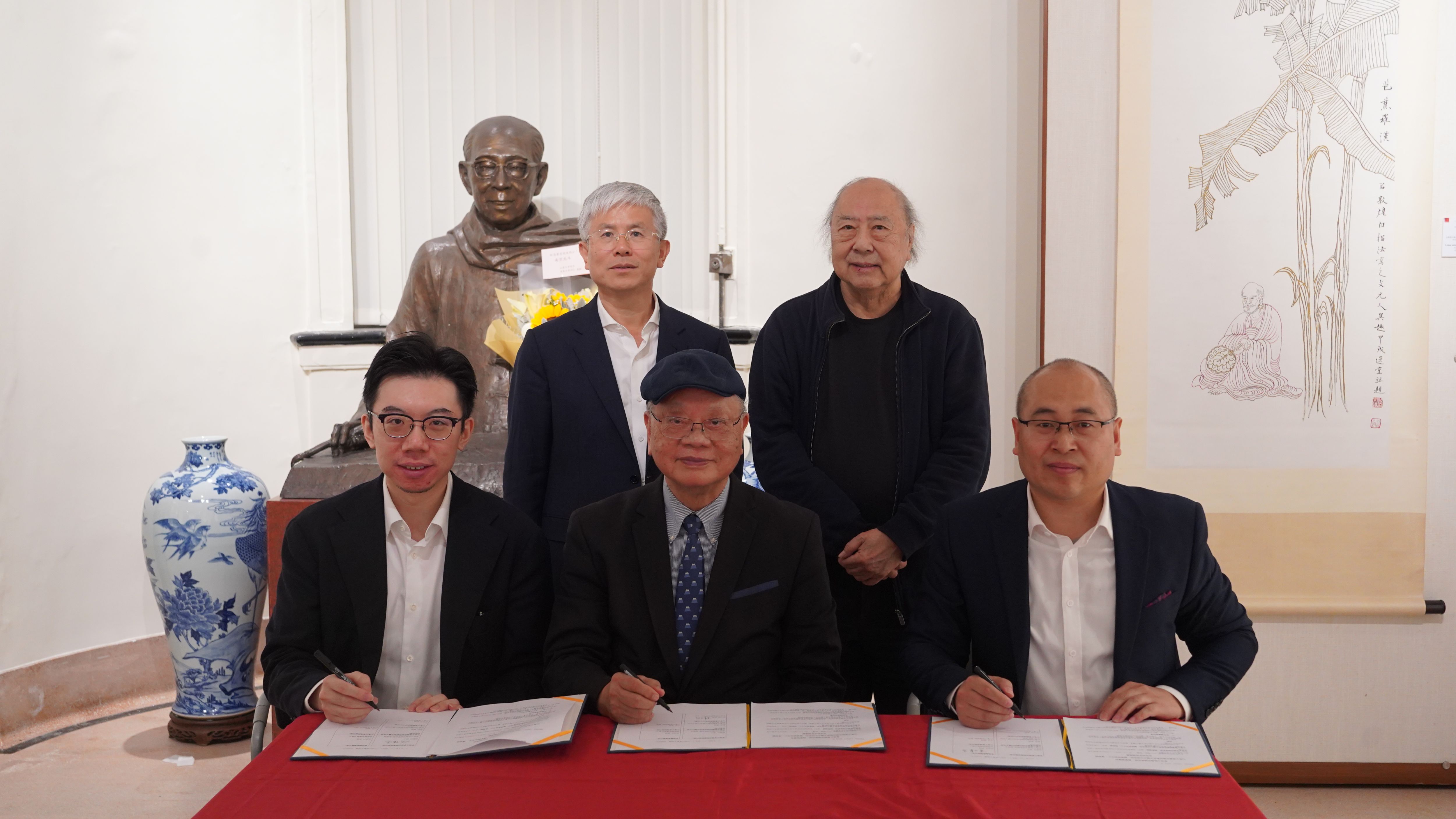 李术才代表山东大学向饶宗颐塑像敬献鲜花,并在嘉宾留言簿上题词“道德文章垂不朽,清风雅量著平生”。李术才向饶宗颐学术馆和饶学联汇赠送《山东省城试办大学堂暂行章程》《周氏师古堂法帖》和近年学校人文社科领域代表性研究成果。李焯芬向李术才赠送饶宗颐先生《眼底山川——饶宗颐教授寰宇艺踪》《海上因缘:饶宗颐艺术天地》书画集。在李术才和邓伟雄见证下,双方签署《香港大学饶宗颐学术馆、饶学联汇与山东大学饶宗颐宗教与中国文化研究所、饶学研究中心、博物馆合作与交流协议书》,进一步扩大饶宗颐宗教与中国文化研究所(挂靠山东大学哲学与社会发展学院犹太教与跨宗教研究中心)的学术研究和影响力。