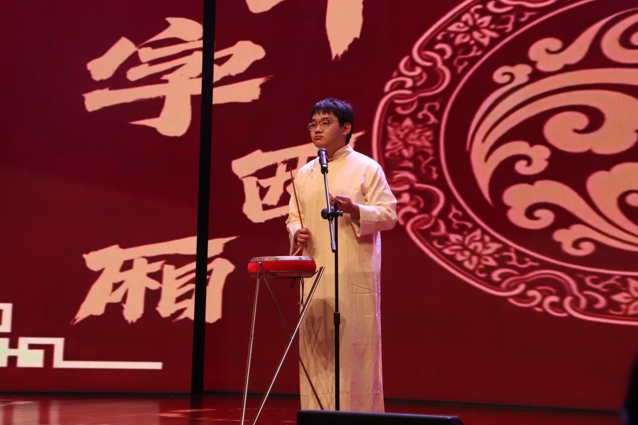 其中,跨宗教研究文化中心的傅有德老师作为宗教学、哲学领域学界知名领军学者,与2025级新生联袂演绎《曲艺杂坛》。一唱一和的默契配合中,既蕴含“师带徒”式的文化传承意涵,更让学术薪火与师生温情同频共振,引发全场阵阵喝彩,将整场晚会推向了高潮。