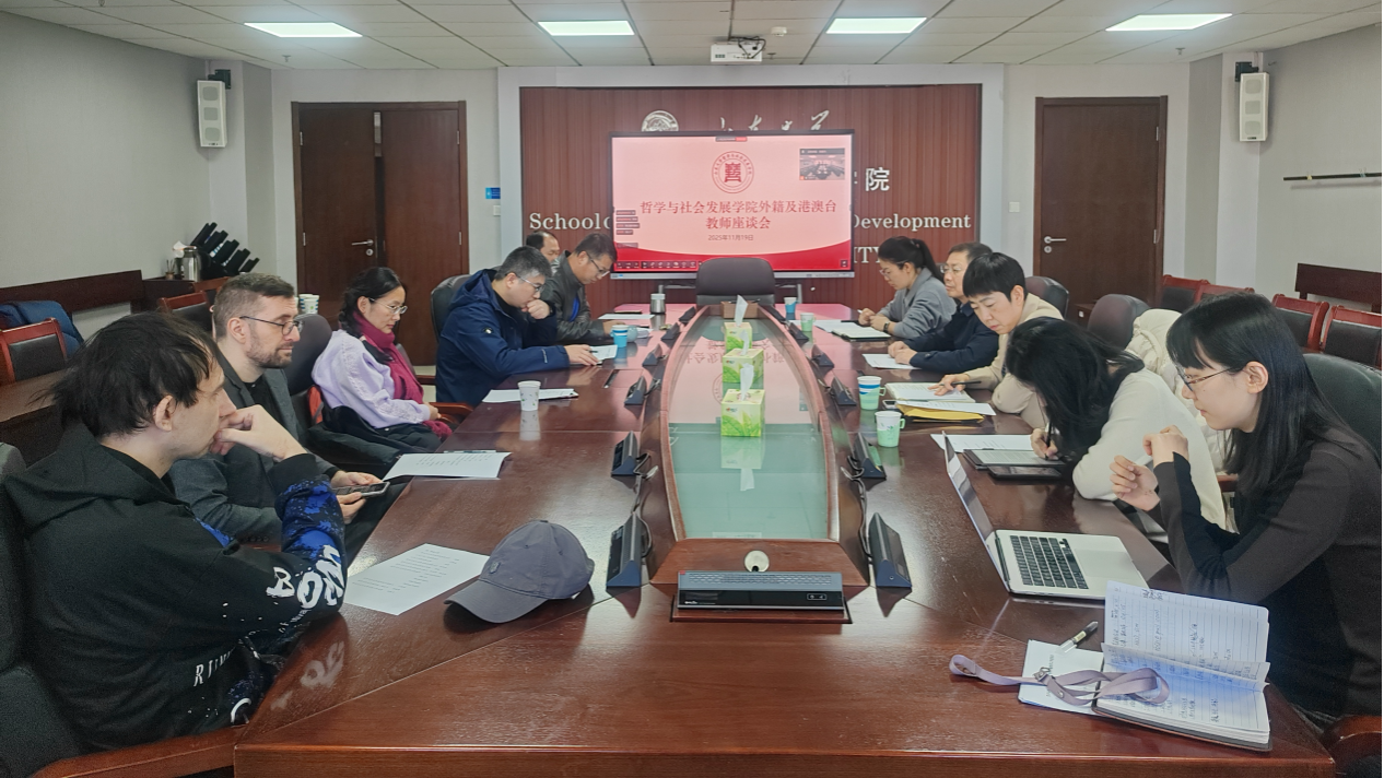 11月19日下午,哲学与社会发展学院组织召开外籍及港澳台教师座谈交流会。山东大学人事部副部长王璐璐、国际事务部高歌老师到会指导工作,哲学与社会发展学院党委书记梅强、副书记翁祥栋、外籍及港澳台教师以及院长助理梁栋、李海涛等参加座谈会,会议由院长助理梁栋主持。