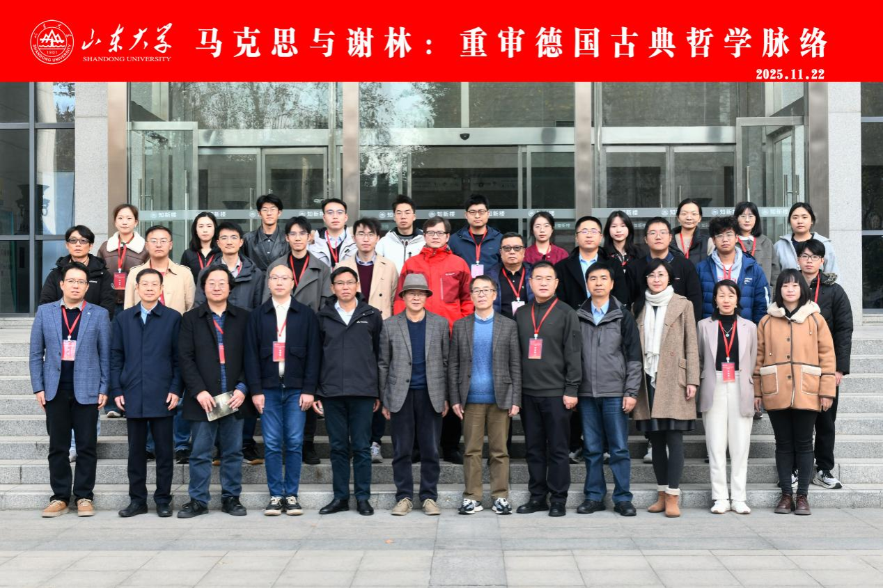2025年11月22日至23日,“马克思与谢林:重审德国古典哲学脉络”学术研讨会在山东大学中心校区成功举办。本次会议由山东大学哲学与社会发展学院主办,汇聚众多专家学者,围绕谢林哲学与马克思思想的关联、青年黑格尔派的中介作用及德国古典哲学脉络重审等议题展开深入交流。