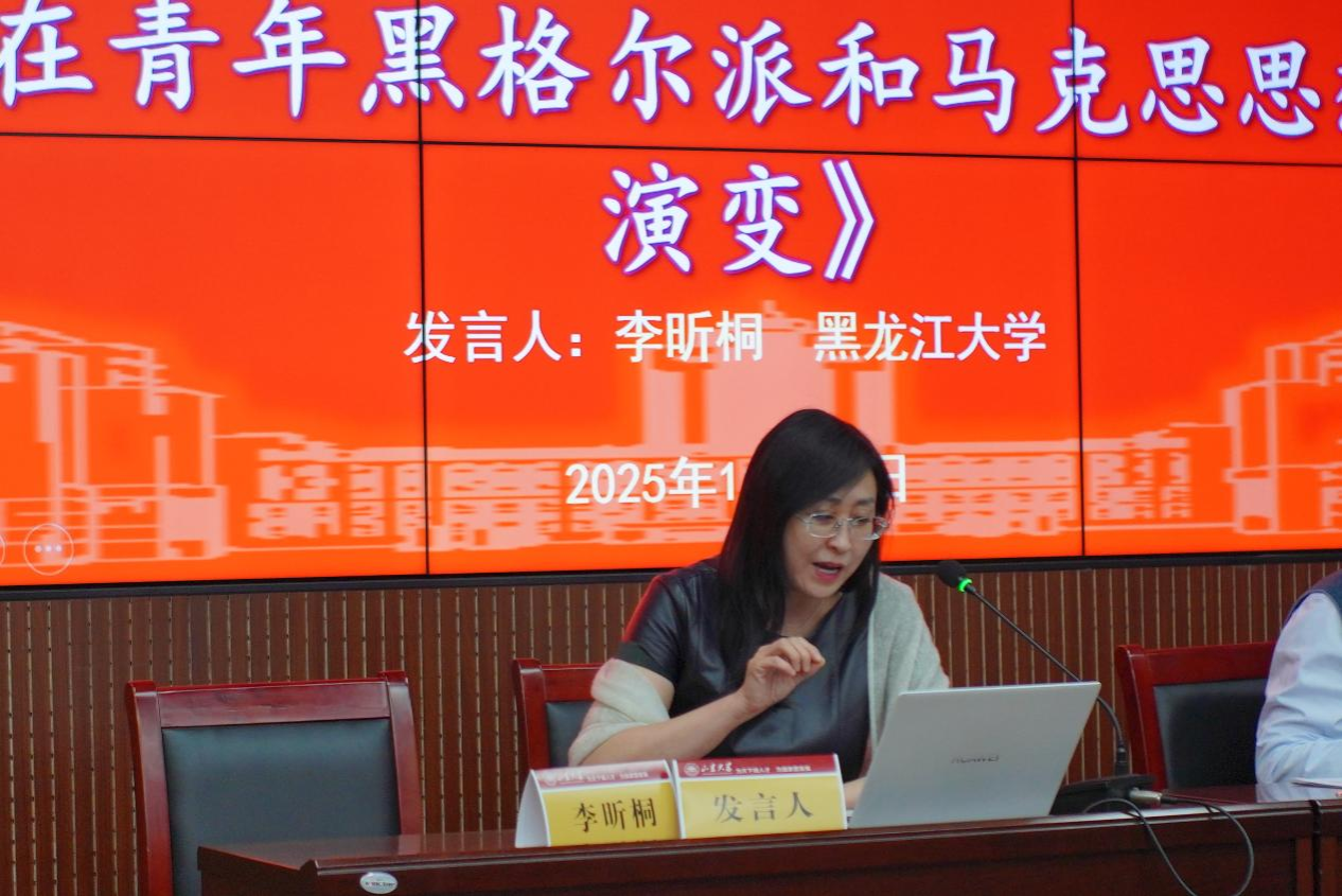 第六场大会报告由湖南师范大学严杭迪老师主持。南京医科大学刘冠呈老师、复旦大学硕士生孟德誉、山东大学博士生熊梓涵先后发言。三位学者分别聚焦施蒂纳、黑格尔国家观批判以及切什考夫斯基,共同指向谢林哲学在青年黑格尔派转向及马克思思想形成中的关键中介作用,突破了传统“黑格尔-马克思”的二元叙事。