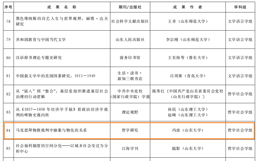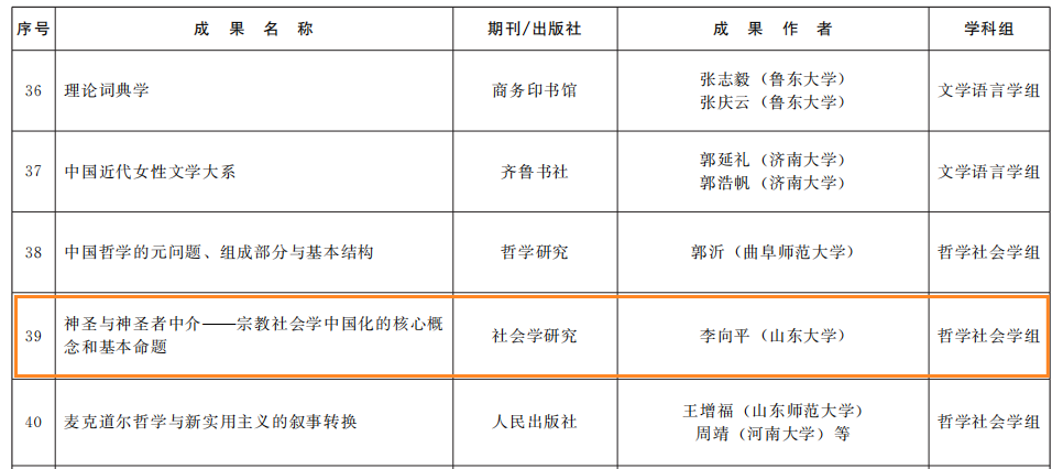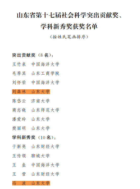 近日,山东省人民政府公布第三十七届社会科学优秀成果奖、第十七届社会科学突出贡献奖及学科新秀奖获奖名单,哲学与社会发展学院在本次评选中表现突出,展现出学院在哲学社会科学领域的扎实积累与创新能力。