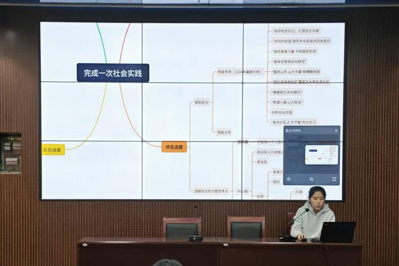 接下来,李沐遥结合自己24年的切身社会实践经历,警示同学们在项目选题上注意避免重合与安全问题。在队伍组建方面,深入分析了两种组建形式的利弊,并进一步阐述了好宣传的重要性,并且希望有意愿成为队长的同学能够勇于承担责任,通过社会实践给自己一次全方位的锻炼。