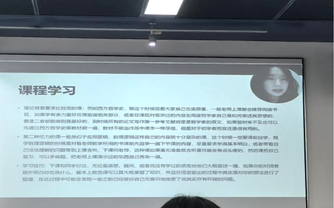 针对哲学专业学习,王抱朴建议新生主动阅读经典原著,勤于思考、勇于讨论,在深度对话中培养批判性思维。她推荐综合运用纸笔手写、平板笔记及文献管理工具辅助学习,积极实践费曼学习法,逐步构建系统化、个性化的知识体系。同时,她提醒同学们合理安排作息,保持规律运动与健康社交,以良好身心状态支撑高效学习。