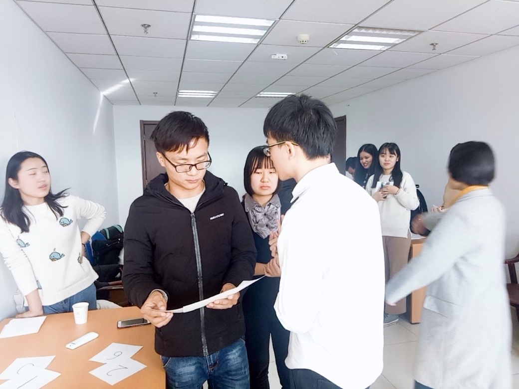 在对同学做了简单分组后,分成了两个小组进行学习讨论,开展交流活动。同学们在学习过社会工作知识特别是小组工作后,十分自然地运用了小组工作模式——大家又一次细致地介绍了自己,然后做了一些富有社工内涵的“破冰活动”,如“你说我猜”、“寻找团队”、“节奏拍手”和“田忌赛马式比大小”……在游戏中,同学们团结合作,同思考破难题,进一步加深了相互的了解。在这样一个轻松自由的氛围中,大家谈论了各自选择社工的原因并分享了学习社工知识后对于这个学科的新理解与新想法。