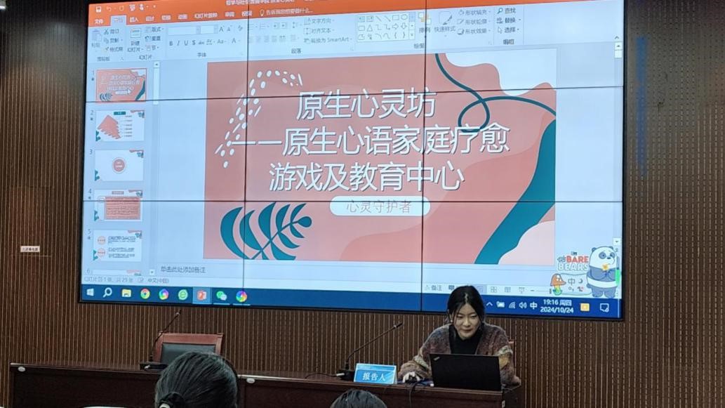 接下来,哲社学院原生心灵坊项目组负责人李勃慧从“创业背景”“产品技术”“市场分析”“团队战略”“社会价值”“发展愿景”六个方面为同学们带来项目的论证分享。其中,在产品开发环节,她强调拥有一个好想法的重要性,鼓励同学们主动用一个好想法推动一支好队伍的建设,提出要重视团队分工合作,加强多学科相互交叉借鉴,充分发挥跨学科融合优势,不断推进项目成果的完善与发展。