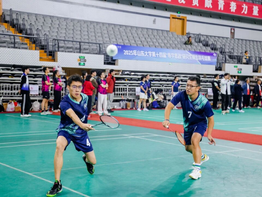 2025年11月8日—9日,为贯彻落实习近平总书记关于教育、体育的重要论述,培育研究生“为国争光、无私奉献、团结协作、顽强拼搏”的中华体育精神,深化导学思政建设,山东大学研究生院、党委研究生工作部和体育学院在中心校区体育馆联合举办了2025年第十四届“导学思政”研究生师生羽毛球赛。哲学与社会发展学院经过院赛选拔、队伍组建、训练备战,由田洁教授、李海涛副教授、学院团委书记班梦姣、研究生辅导员吕汶鑫,学生曹明德、邵焕芬、朱子涵、黄柯云组成队伍参加比赛。